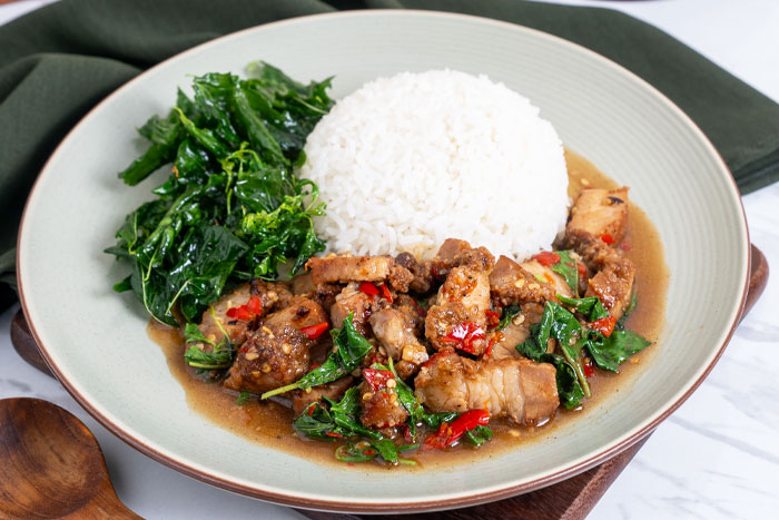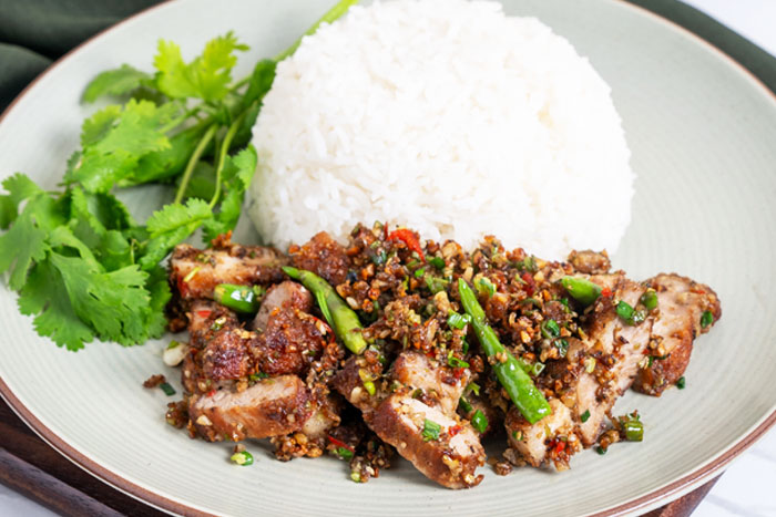 Stir-fried Pork Belly with garlic, salt, chili and steamed rice