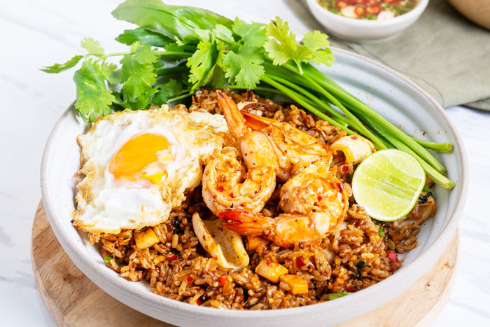 Shrimp and squid fries rice with spicy Tom-yum paste