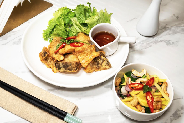 Deep Fried Sea Bass with Seasoning Fish Sauce and Mango Salad
